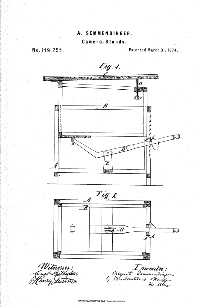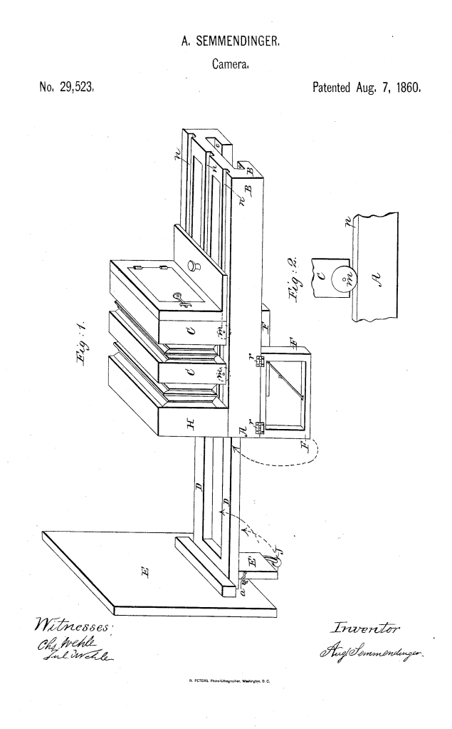 August Semmendinger had four inventions related to camera making patented by the United States Patent Office.